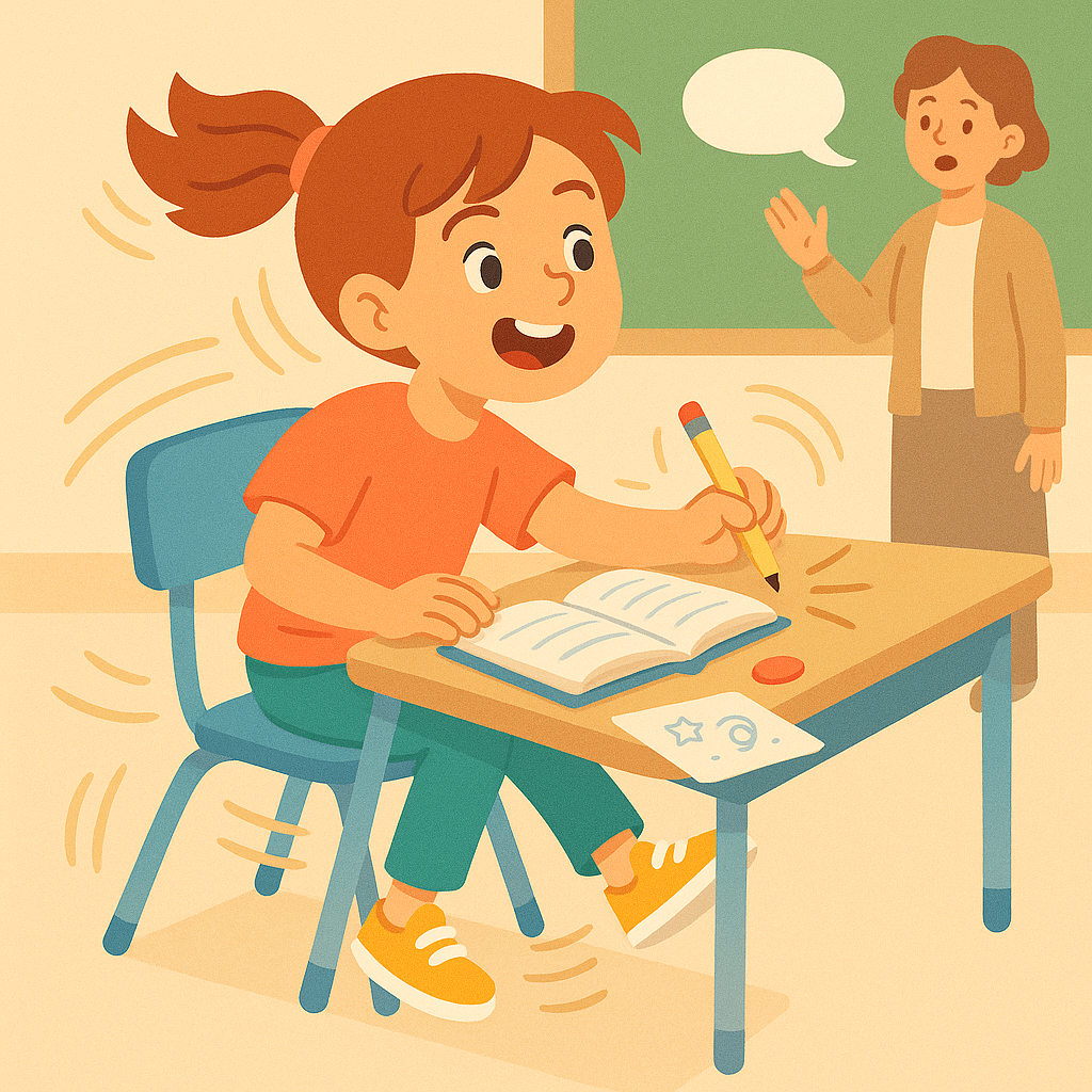 Agitation, besoin de bouger, difficulté à attendre son tour, paroles ou gestes impulsifs.