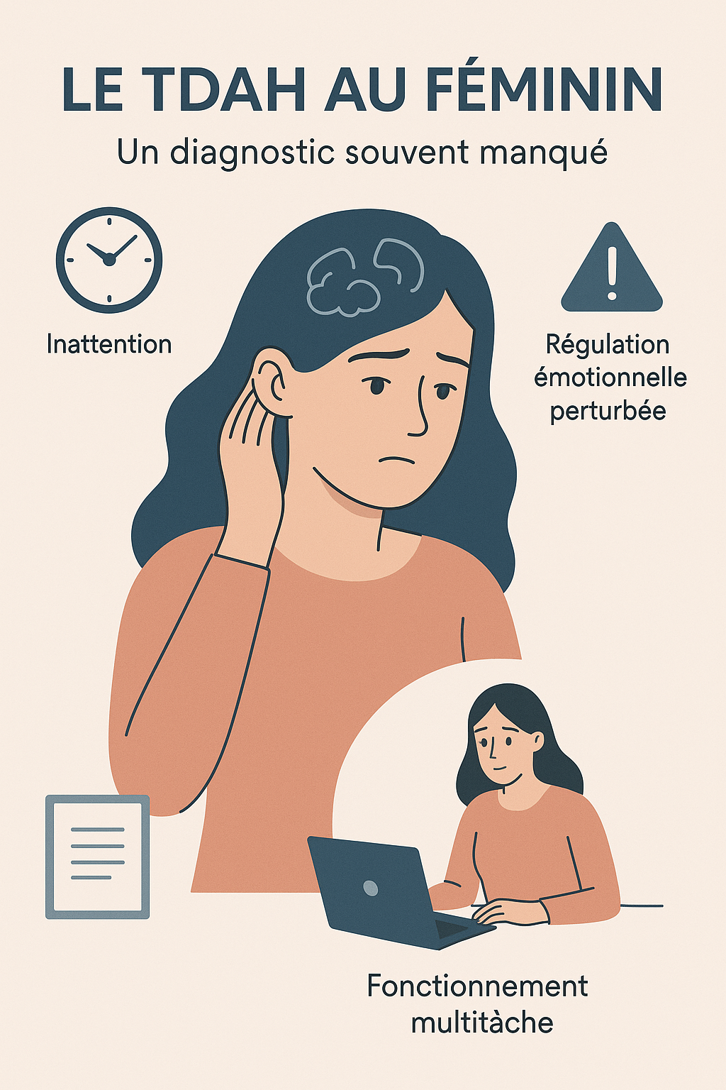 Beaucoup de femmes sont diagnostiquées à l’âge adulte, parfois après un burn-out ou une surcharge de vie (travail, maternité).